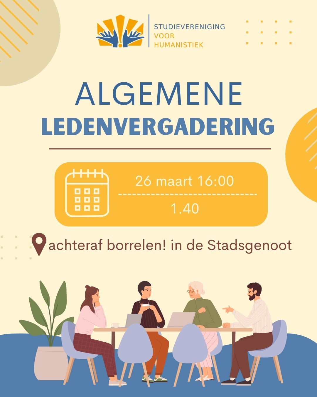 Het is binnenkort weer zo ver, de ALV komt er weer aan. Informatie over waar we het precies over gaan hebben die volgt nog. Voor nu is het belangrijk om te weten dat je tot 20 maart nog punten of zaken kan opgeven die we volgens jou op de ALV moeten behandelen! mail ons dan even via svh@uvh.nl